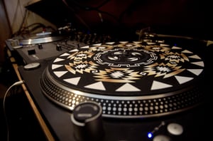 High quality polyester slipmats, strong & durable enough to keep up with any DJ workaholic and sleek enough for the non-DJ, record playing enthusiast. Decked out in a sublimated black / white / gold print of Jasmine's signature "Heritage" pattern.